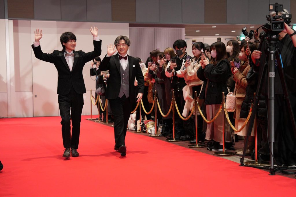 表彰式典に登壇する受賞者は、まず会場内に敷かれたレッドカーペットを歩いての登場となりました。多くのファンが通路を取り囲んで声援を送る中、正装に身を包んだ受賞者たちは手を振ったりカメラに目線を送ったりしながら、MCの岸大河氏、倉持由香氏のインタビューに対して受賞の喜びや今年の抱負などを語りました。